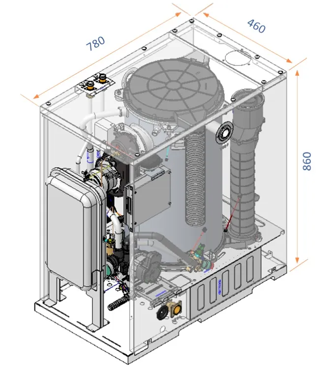 Wymiary kotła olejowego LCB500-28CI: 460mm x 680mm x 860mm